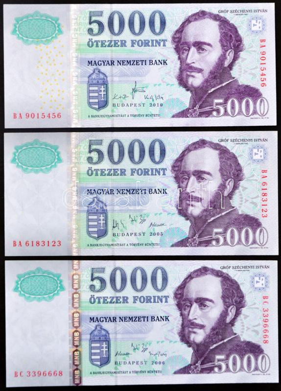 2005,2006,2010. 5000Ft "BA", "BC" (3x) T:I,I- egyi...