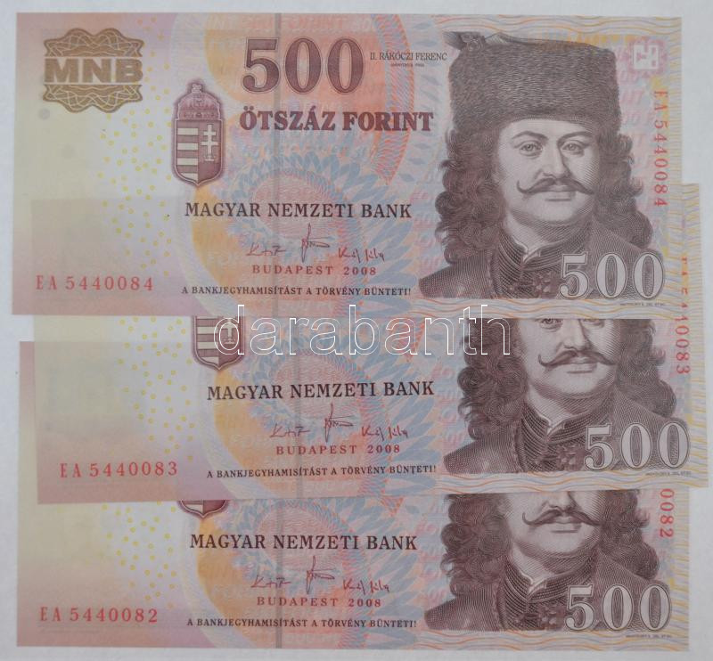 https://www.darabanth.com/en/251-Online-auction/251.0/Numismatics/Hungarian-Banknotes~7/2008-500Ft-EA-3x-sorszamkovetok-TI-II~II1212332