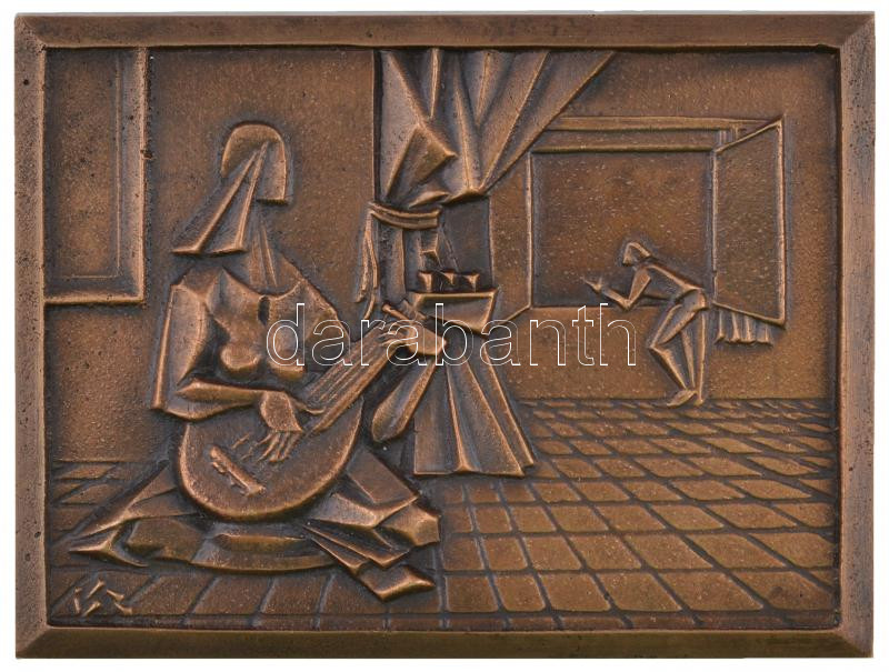 Ifj. Szlávics László (1959-) 1983. "Házi muzsika" egyoldalas öntött Br plakett (101x133mm) T:2