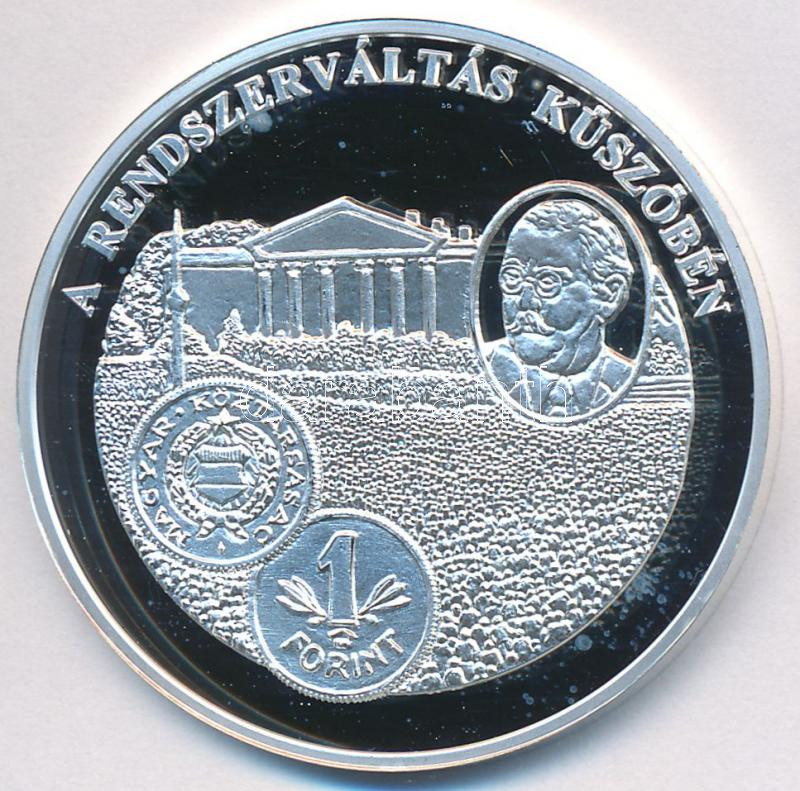 DN "A magyar pénz krónikája - A rendszerváltás küszöbén" Ag emlékérem tanúsítvánnyal (20g/0.999/38,61mm) T:PP fo.
