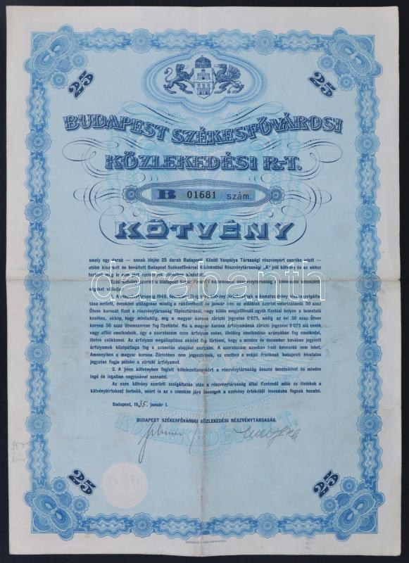 https://www.darabanth.com/en/251-Online-auction/251.0/Numismatics/Shares-and-Tickets~5/Budapest-1935-Budapest-Szekesfovarosi-Kozlekedesi-Rt-25-B-kotvenye-szelvenyekkel-TIII~II1209230
