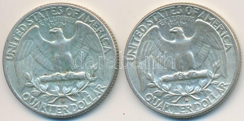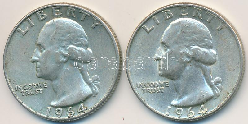 Amerikai Egyesült Államok 1964D 1/4$ Ag "Washington Quarter" (2x) T:2-