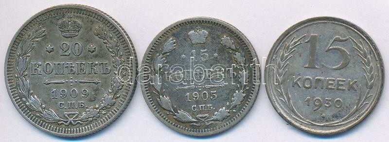 Description: Orosz Birodalom 1905. 15k Ag + 1909. 20k Ag + Szovjetunió 1930. 15k Ag T:2,2-,3