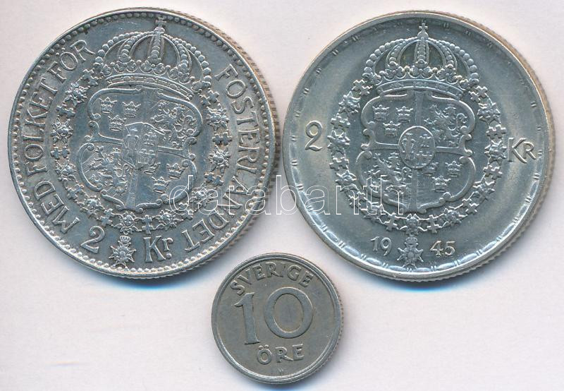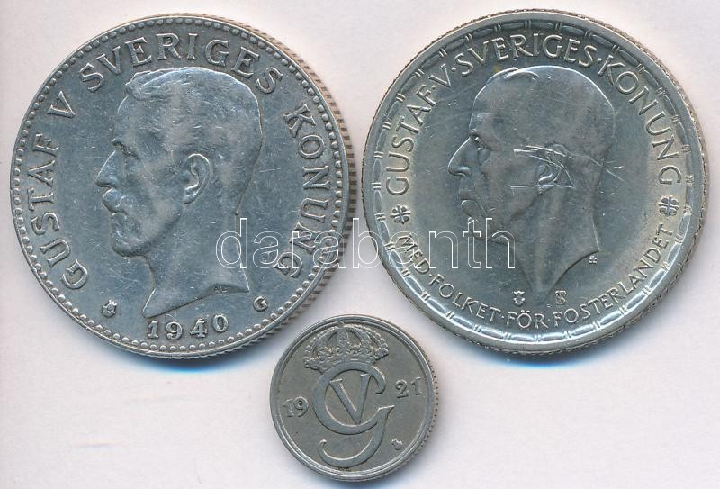 Svédország 1940G 2K Ag "V. Gusztáv" + 1945G 2K Ag "V. Gusztáv" + 1921. 10ö Ni-Br T:2,2- karc