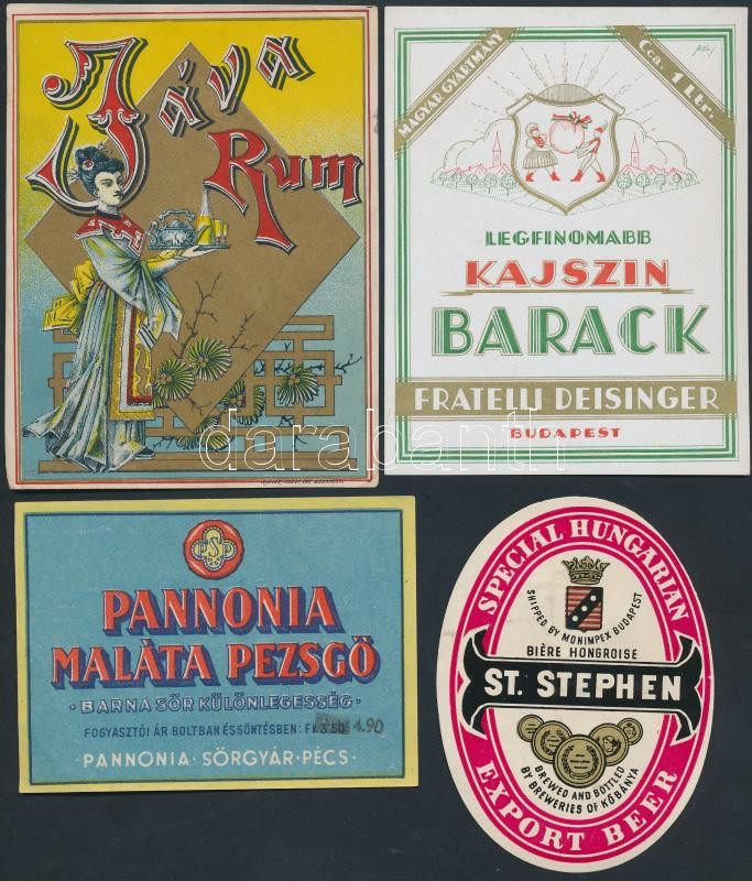 4 db régi italcímke(St. Stephen, Jáva rum, Pannonia Maláta Pezsgő, Fra...