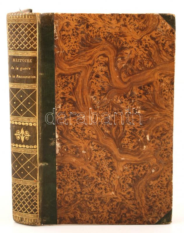 Description: Jean Sarrazin: Histoire de la guerre de la Restauration depuis le passage de la Bidassoa par les allies, 7 octobre 1815 jusqu'a la loi d'amnistie du 12 janvier 1816 / par M. Sarrazin. Aranyozott félbőr kötésben.