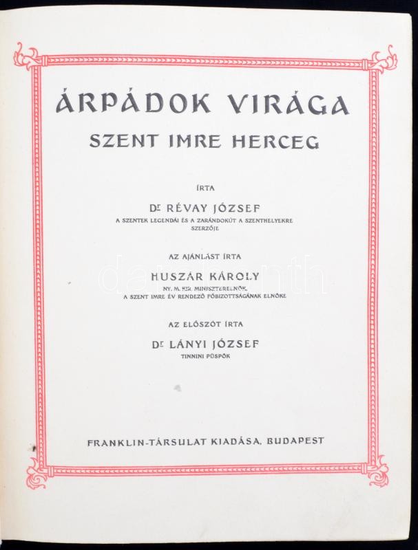 Révay József: Árpádok virága, Szent Imre herceg. Bp., 1929, Franklin. ... https://www.darabanth.com/en/251-Online-auction/251.0/Other-collectibles/Books-History~600022/Revay-Jozsef-Arpadok-viraga-Szent-Imre-herceg-Bp-1929-Franklin-Gazdagon-diszitett-fes~II1209555