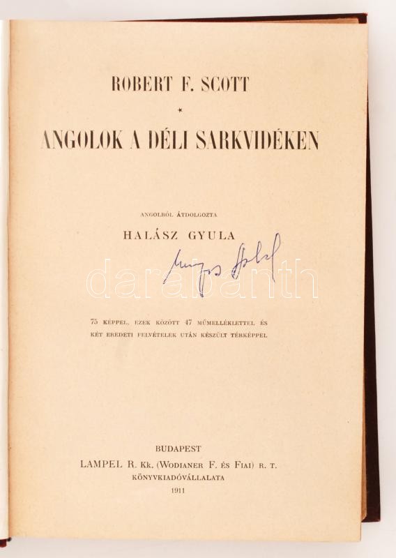 Scott, Robert F.: Angolok a Déli sarkvidéken. Bp., 1911, Lampel (A Mag... https://www.darabanth.com/en/251-Online-auction/251.0/Other-collectibles/Books-Travelling-cities~600014/Scott-Robert-F-Angolok-a-Deli-sarkvideken-Bp-1911-Lampel-A-Magyar-Foldrajzi-Tarsasag-KC3~II1213041