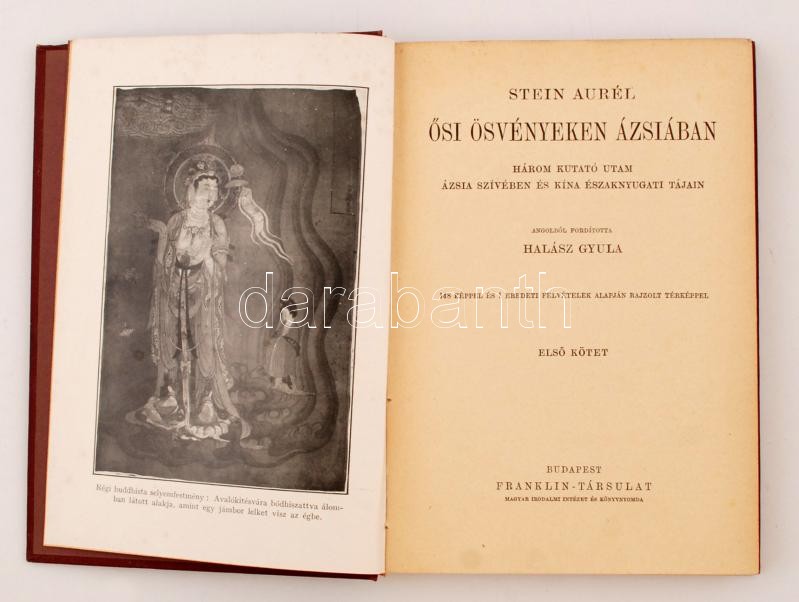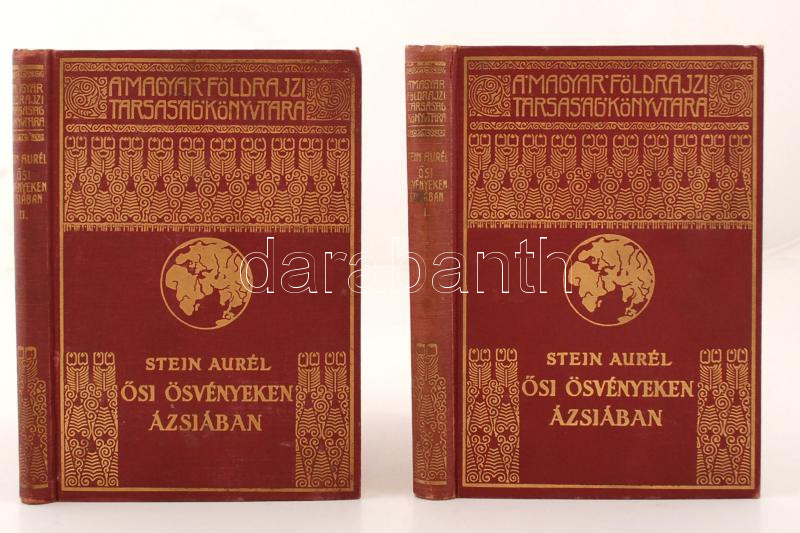 Stein Aurél: Ősi ösvényeken Ázsiában 1-2. köt. Bp., é. n., Franklin (A Magyar Földrajzi Társaság Könyvtára). Kicsit kopott, díszes, aranyozott vászonkötésben, egyébként jó állapotban.