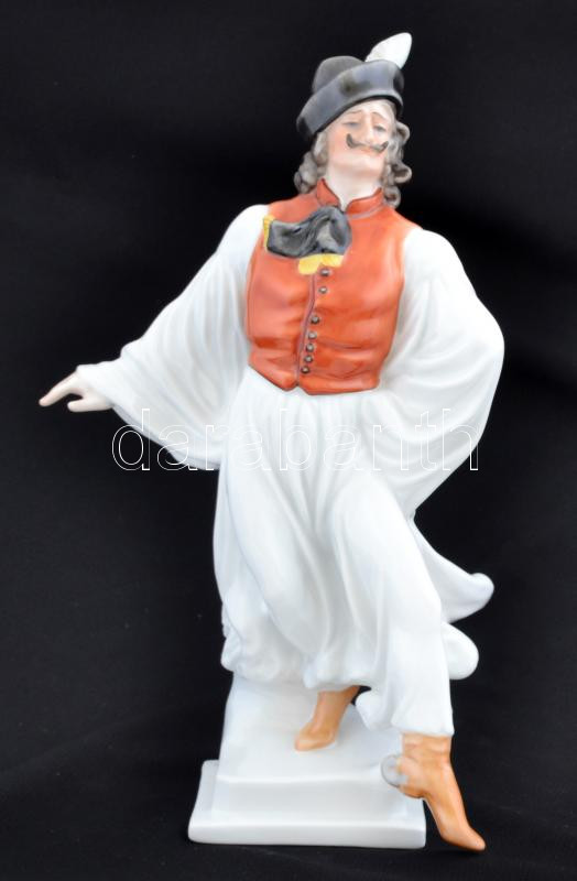 Herendi táncoló juhász, kézzel festett, jelzett (koronás), hibátlan, m: 29 cm