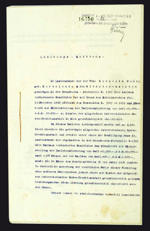 1922 Német nyelvű adósságtörlési okmány és hozzá tartozó hiteles magya...