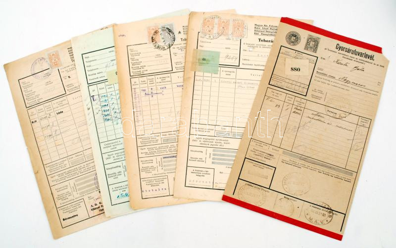 1934-1938 5 db klf fuvarlevél(gyorsáru-fuvarlevél, teheráru-fuvarlevél...