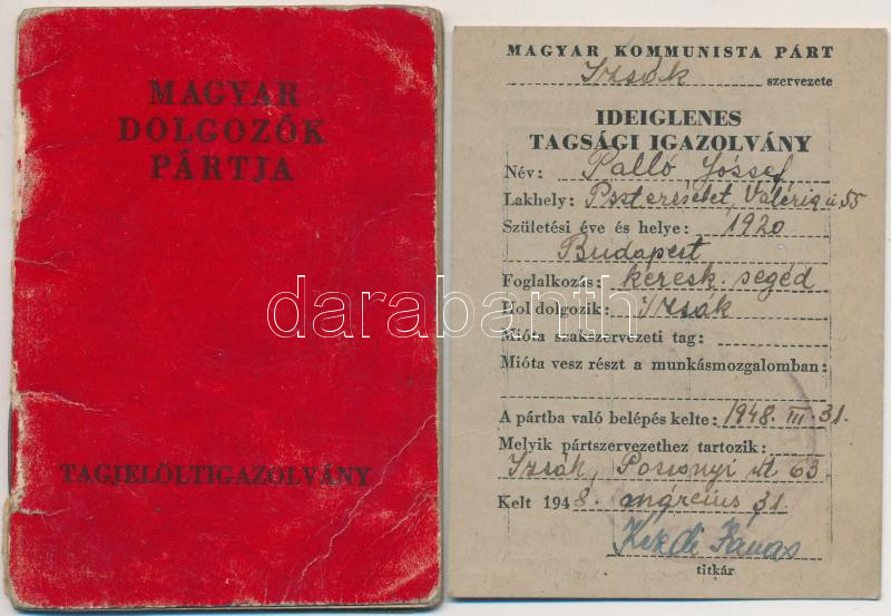 https://www.darabanth.com/en/251-Online-auction/251.0/Other-collectibles/Documents~600024/1948-1953-A-Magyar-Dolgozok-Partja-altal-kiadott-tagjelolt-igazolvany-es-a-Magyar-Kommunista~II1209529