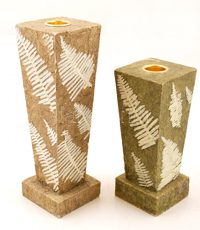 2 db levélmotívummal díszített Amerikából származó gyertyatartó, m: 15...