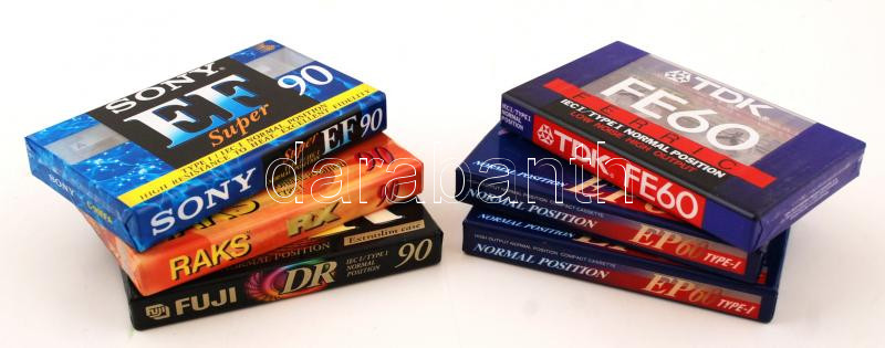 6 db különböző márkájú, 60 és 90 perces magnókazetta, bontatlan csomag...