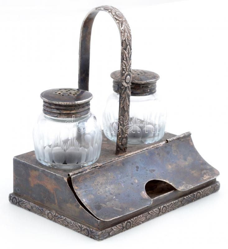 Alpakka só és borsszóró, tartóval, 12x9x12 cm