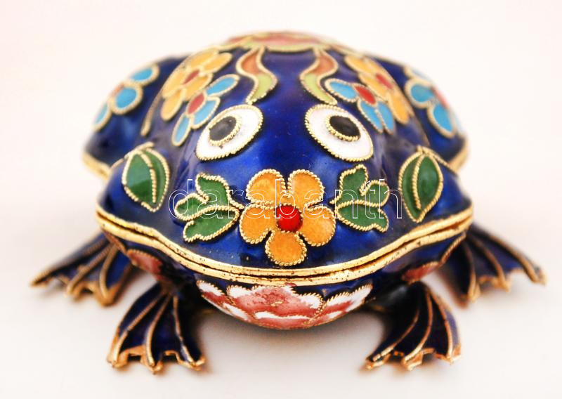 Béka formájú rekeszzománc ékszertartó, 7,5x6x4 cm, dísztáskában