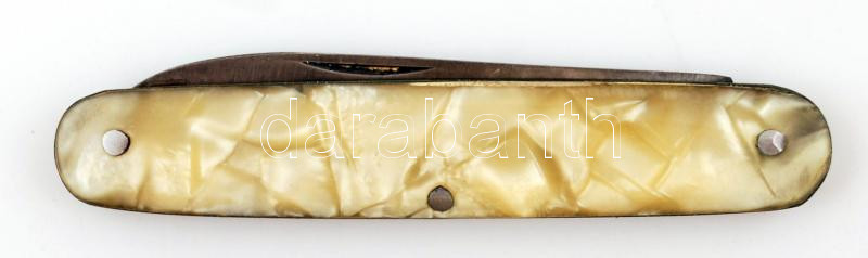 Bicska gyöngyház borítású nyéllel, két pengével, tokban, h: 18 cm