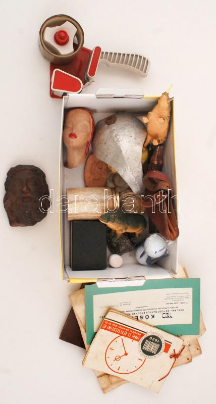 Egy doboznyi vegyes bolhapiac tétel, benne írószerek és asztali dolgok... https://www.darabanth.com/en/251-Online-auction/251.0/Other-collectibles/Flea-Market~600017/Egy-doboznyi-vegyes-bolhapiac-tetel-benne-iroszerek-es-asztali-dolgok-egyarantgolflabdak-ra~II1213683