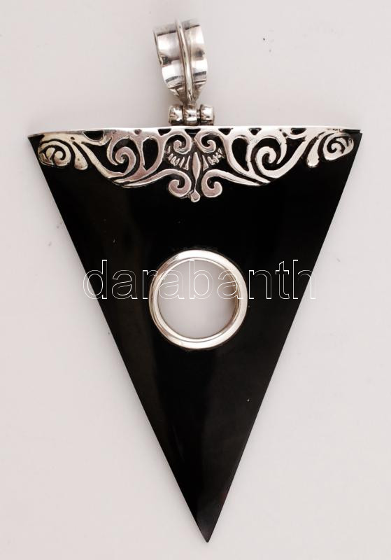 Ezüst(Ag) foglalatos fekete kagyló függő, jelzett, br: 7,3 g