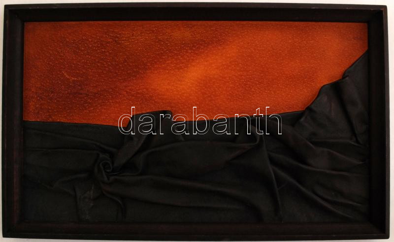 Iparművész bőr falikép, jelzés nélkül, keretben, 20×35 cm