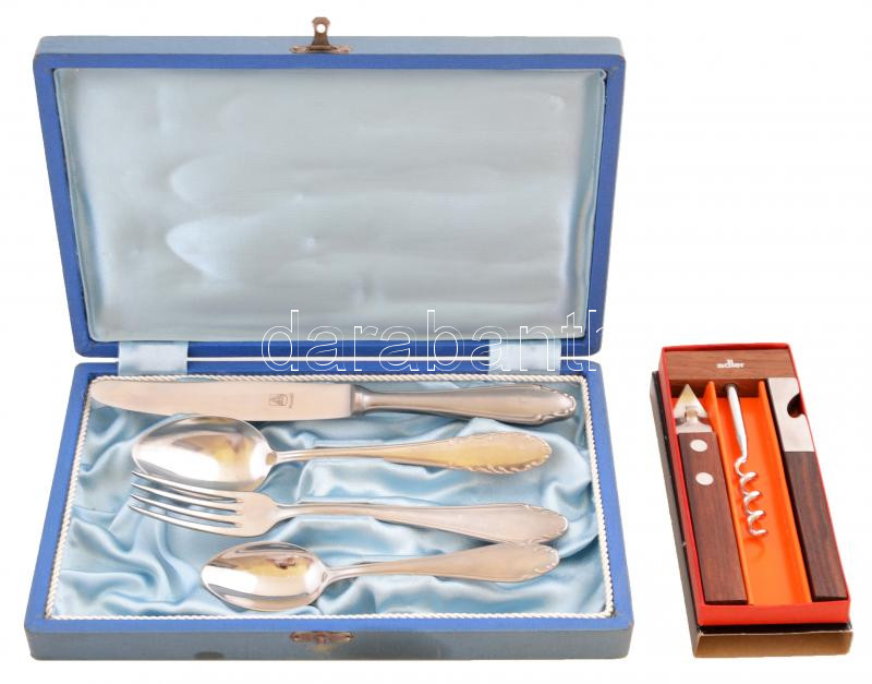 Jelzett egy személyes alpakka evőeszköz készlet (4db) és egy Adler nyitókészlet, eredeti dobozában