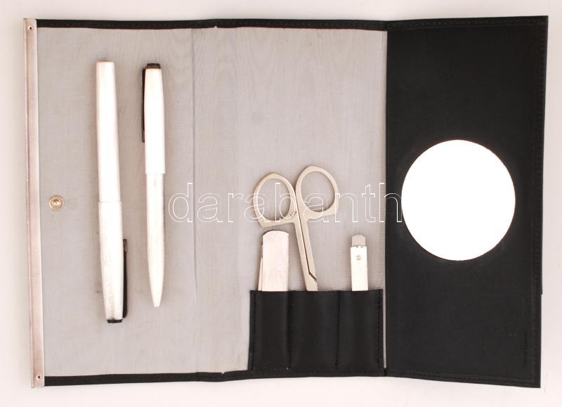 Műbőr toll-, és kisollótartó, kis tükörrel