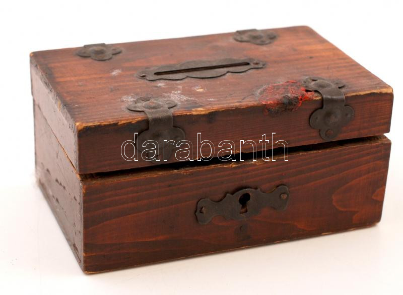 Perselyes doboz, kulcs nélkül, közepes állapotban, 11×7 cm