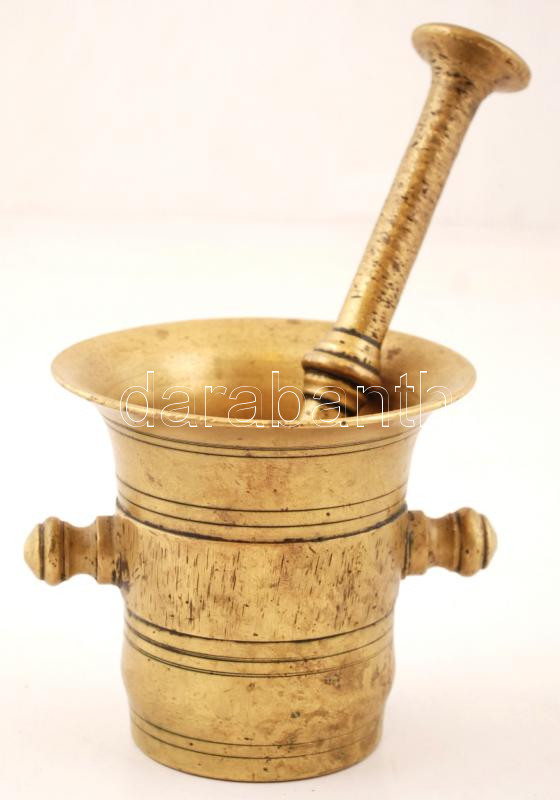 Réz mozsár, törővel, m: 11 cm, h: 21 cm