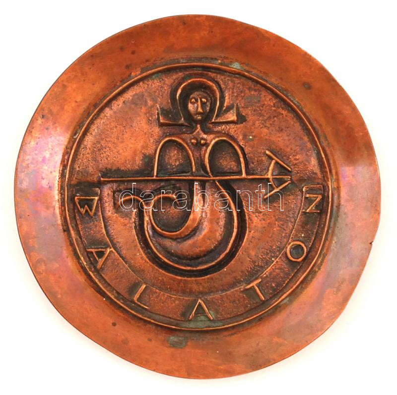 Réz tálka, "Balaton" felirattal, d: 14 cm