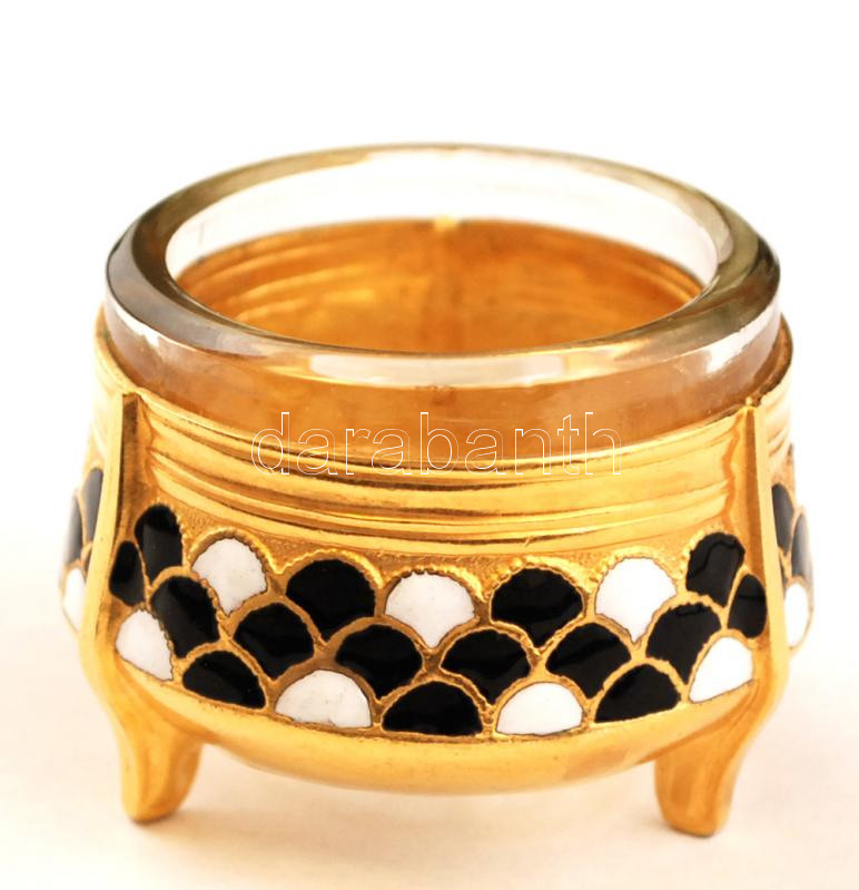 Kisméretű zománcozott üveg fűszertartó, jelzett, apró kopásnyomokkal, ...