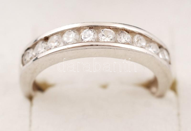 Ezüst(Ag) gyűrű cirkónia kövekkel, jelzett, méret: 57, br: 3,3 g