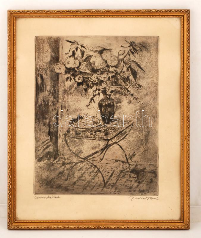 Imre István (1918-1983): Csendélet. Rézkarc, papír, jelzett, üvegezett...