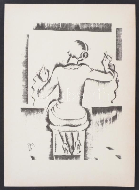 Molnár C. Pál (1894-1981): Telefonos kisasszony, ofszet-karton, 29,5×2...