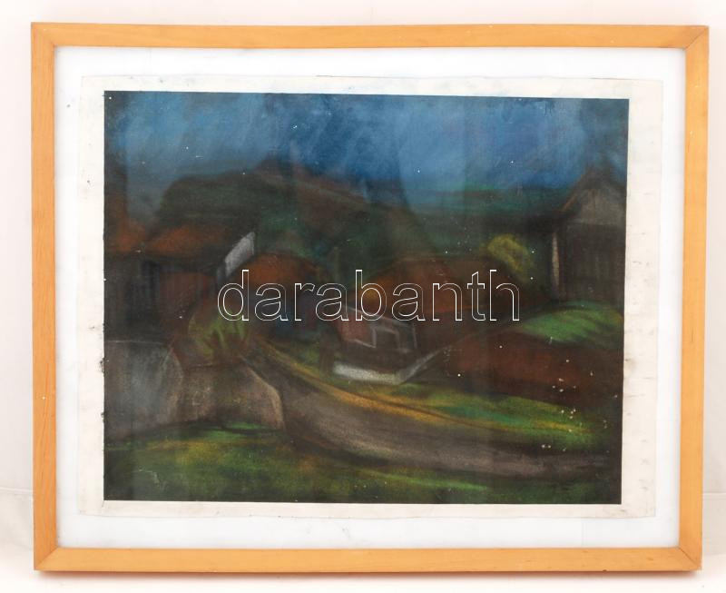 Olvashatatlan jelzéssel: Házak a domboknál. Pasztell, papír, üvegezett keretben, 30×40 cm