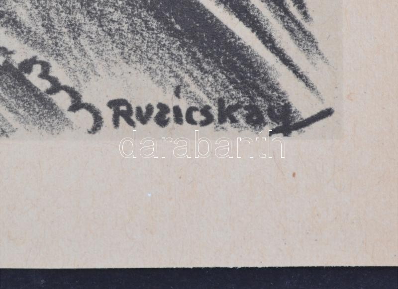 Ruzicskay György (1896-1993): Gépember. Algrafia, papír, jelzett az al...