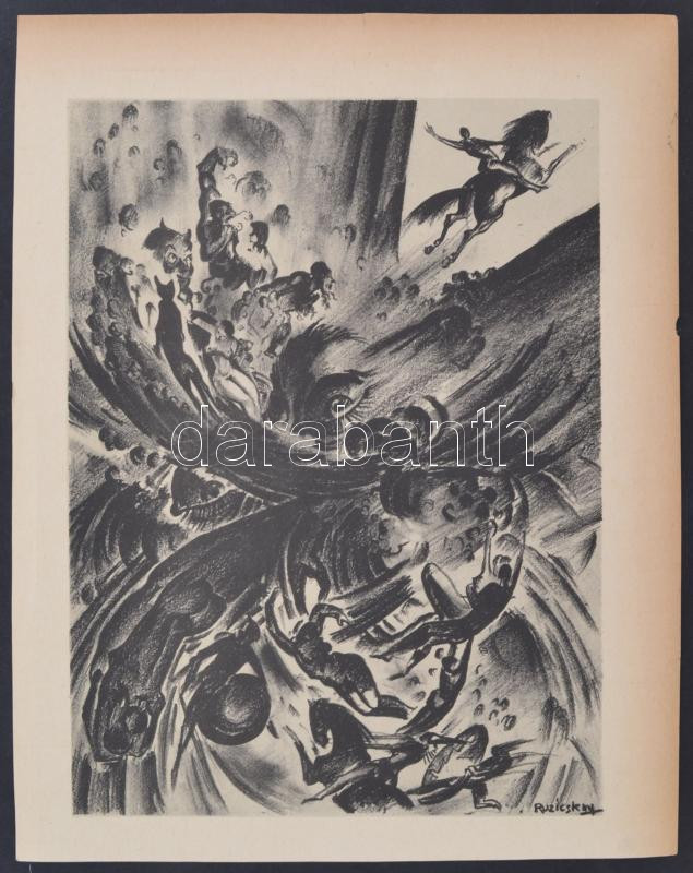 Ruzicskay György (1896-1993): Zűrzavar. Algrafia, papír, jelzett az al...