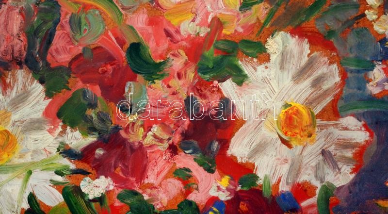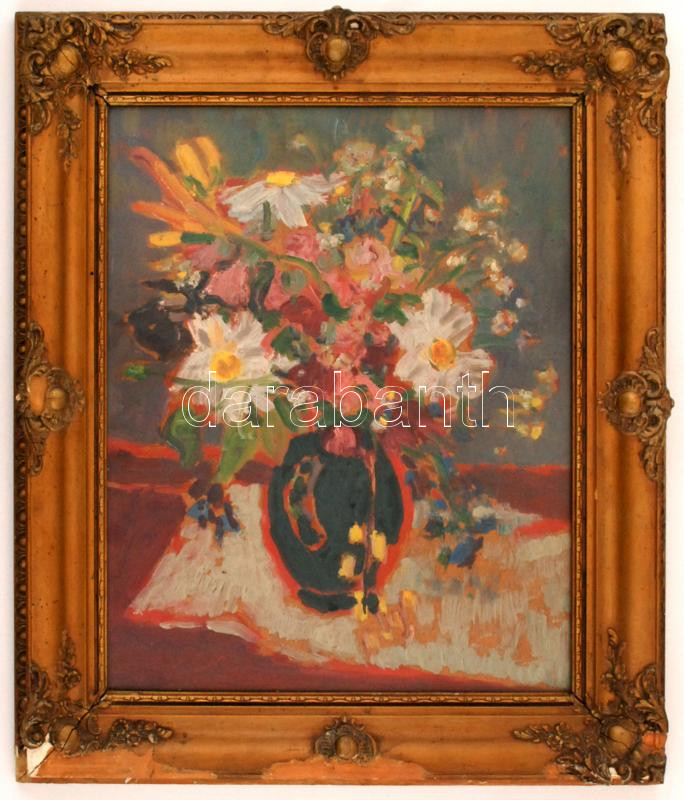 Schéner Mihály (1923-2009): Virágcsendélet. Olaj, farost, jelzett, üve...