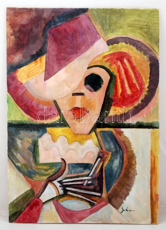 Schon jelzéssel: Kalapos nő. Olaj, falemez, 70×49 cm