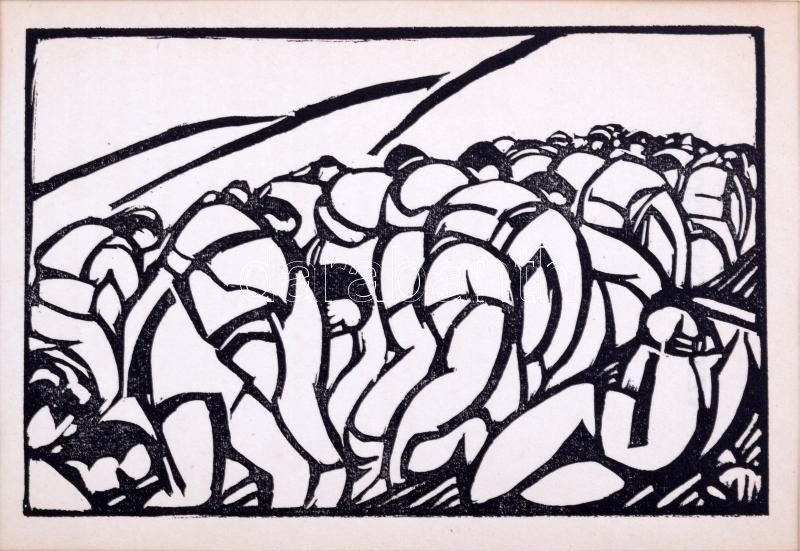 cca 1920 Csöre Erzsébet (1896-?): Hajszoltság, fametszet, papír, jelzé...