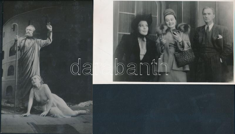 Sulyok Mária(1908-1987) színésznő partnereivel, Somlay Artúrral és Tőkés Annával, Uray Tivadarral, Wellesz Ella pecséttel jelzett fotói, 2 db, 13x9 és 9x14 cm
