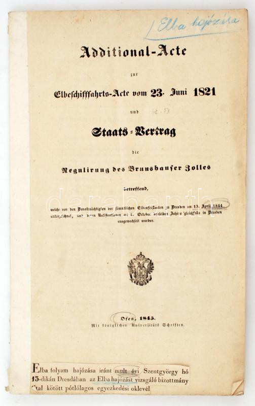 1845 Az Elba folyam hajózásáról kötött egyezmény Budán kinyomtatott sz... https://www.darabanth.com/en/251-Online-auction/251.0/Other-collectibles/Printed-Materials~600008/1845-Az-Elba-folyam-hajozasarol-kotott-egyezmeny-Budan-kinyomtatott-szovege-112p-Sulytab~II1213093