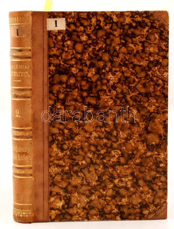 1861 Magyar akadémiai értesítő. A philosophiai törvény- és történettudományi osztályok közlönye. Második kötet. szerk.: Csengery Antal. Pest, 1861, Emich Gusztáv. Aranyozott gerincű félbőr kötésben. báró Radvánszky Béla művelődés- és irodalomtörténész, politikus, császári és királyi kamarás, valóságos belső titkos tanácsos, koronaőr, a Magyar Tudományos Akadémia tiszteleti tagjának aláírásával ill., pecsétjével. Szép állapotú félbőr kötésben.