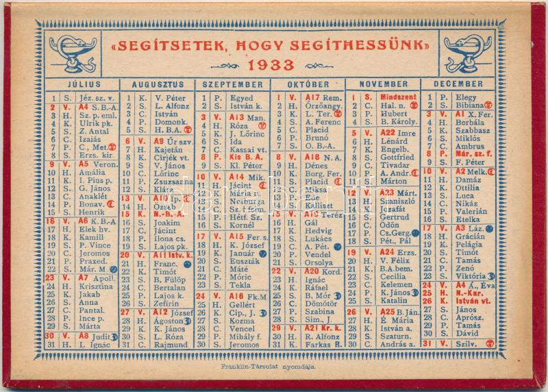 1933, 1935 "Segítsetek, hogy segíthessünk", a Gróf Apponyi Albert Poliklinika asztali naptára, 2 db