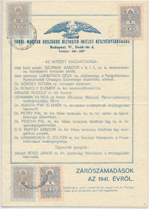 1941 Turul biztosító intézet számadásai az 1941 évről 4p.