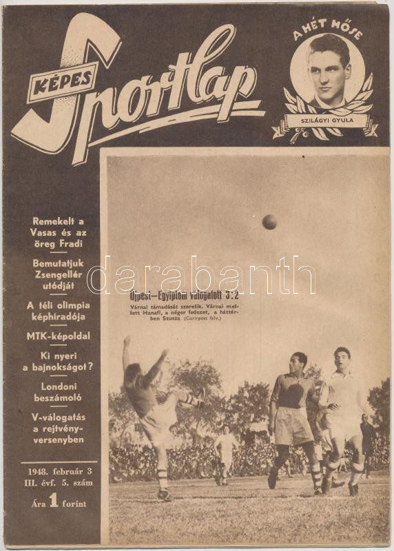 https://www.darabanth.com/en/251-Online-auction/251.0/Other-collectibles/Printed-Materials~600008/1948-A-Kepes-Sportlap-III-evfolyamanak-5-szama-cimlapon-az-Ujpest-Egyiptom32-meccsel~II1213436