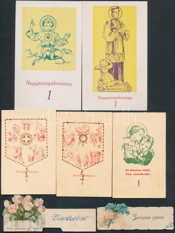 cca 1930-40 Szorgalom jutalom jegy, különböző méretben és minőségben, ...