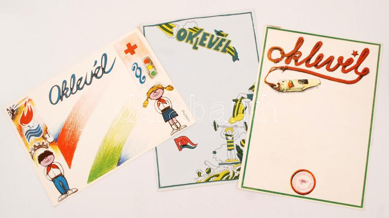 cca 1970-80 Egyedi úttörő oklevelek, 3db, cca 30x21cm