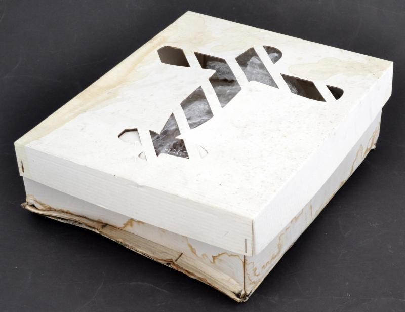 1999 Tokaji Hárslevelű, száraz fehérbor, 0,4 l, jópofa, repülő alakú üvegben, saját, megviselt állapotú papírdobozában