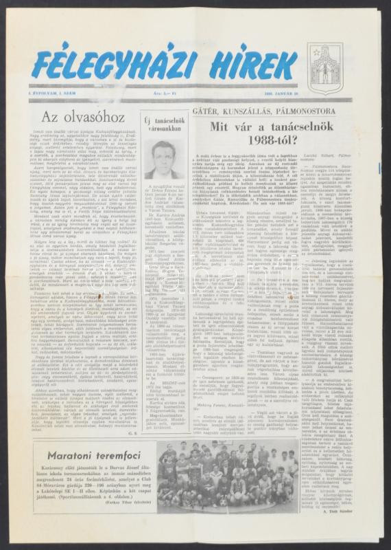 1988 A Félegyházi hírek c. újság 1., induló száma
